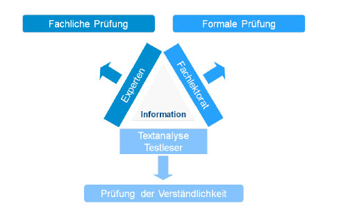 Im Fachlektorat wird der Text nach formalen und sprachlichen Kriterien untersucht. So werden unverständliche Fachbegriffe, Bandwurmsätze, Anglizismen, ein abgehobener Schreibstil, Druckfehler und Rechtschreibschwächen zuverlässig vermieden.